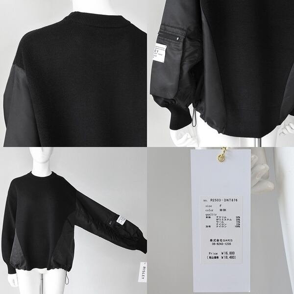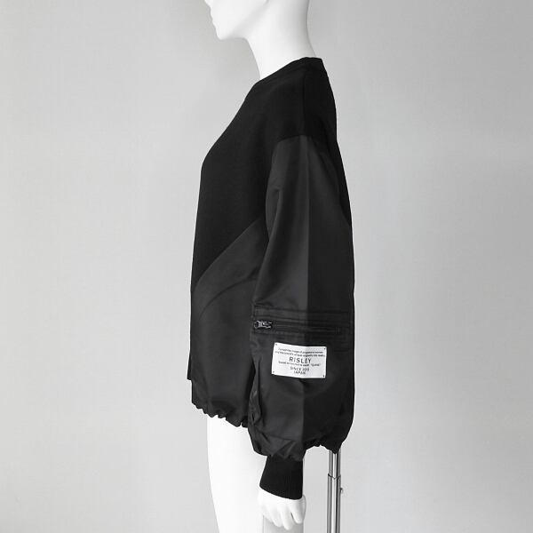 【 RISLEY 】 リズレー リズレイ 異素材コンビ ポケットスリーブ 裾ドローコード プルオーバー ウール混 ニット 春秋冬 レディース [R2503-DNT876-99-BLK]