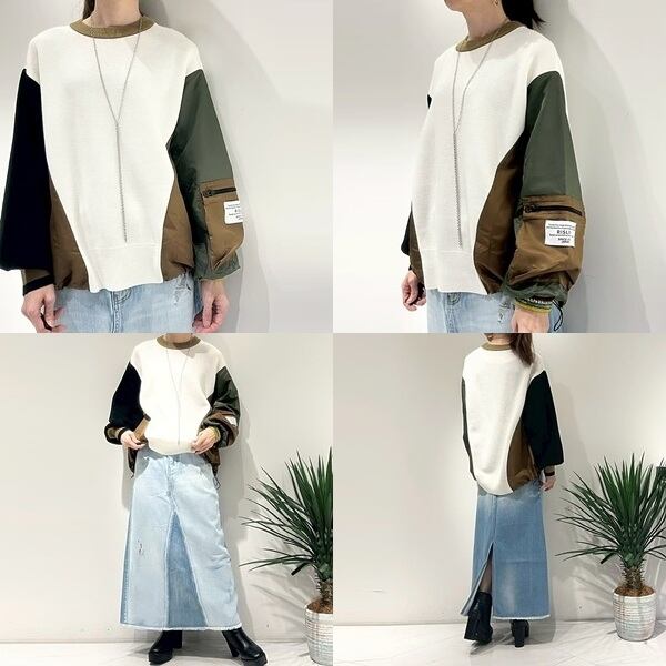 【 RISLEY 】 リズレー リズレイ 異素材コンビ ポケットスリーブ 裾ドローコード プルオーバー ウール混 ニット 春秋冬 レディース