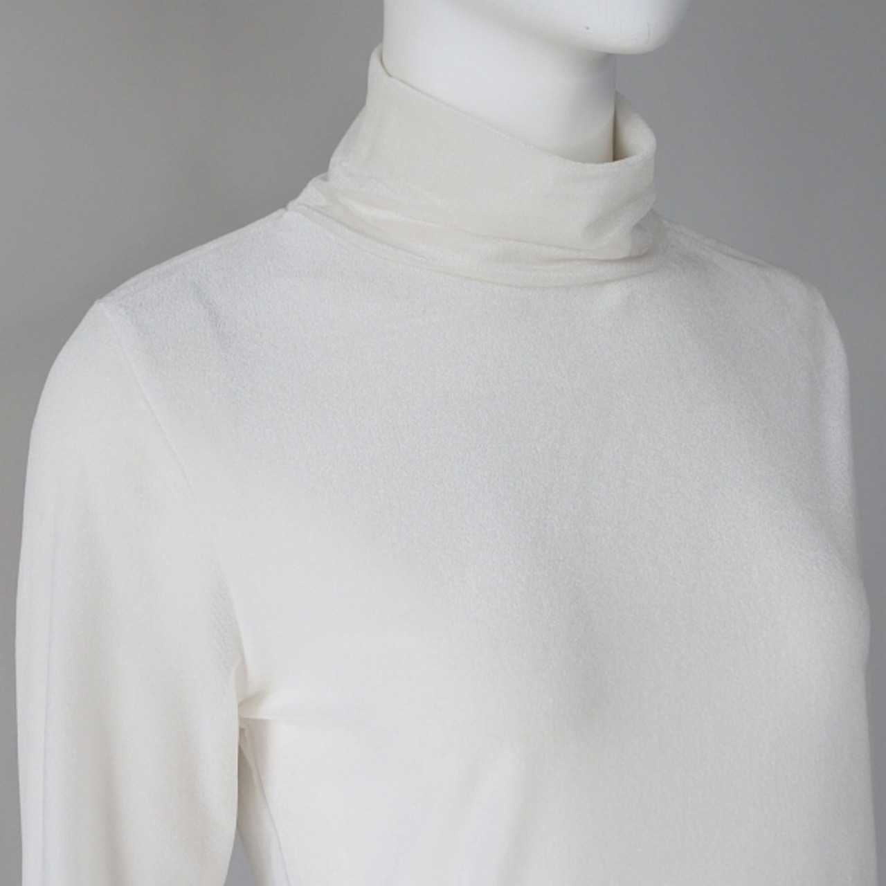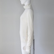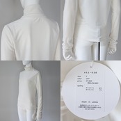 程よい透け感と光沢を兼ね備えた、軽やかなベロアトリコットを使用したハイネックカットソー。
