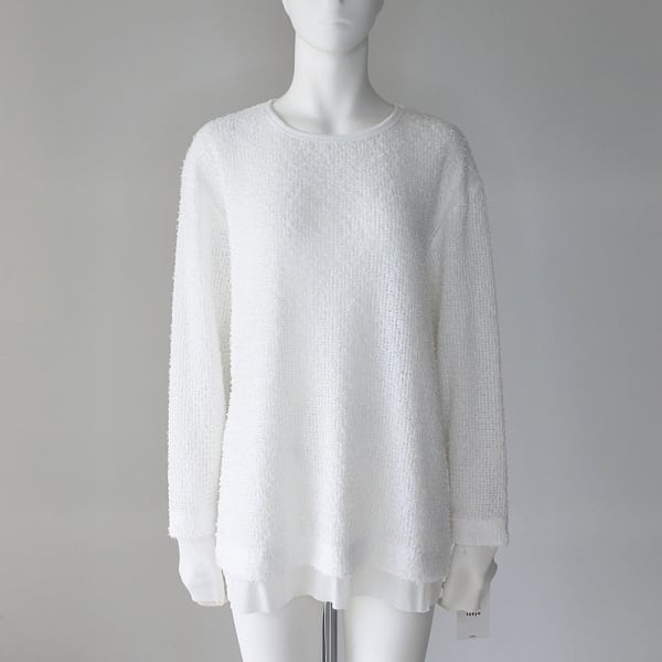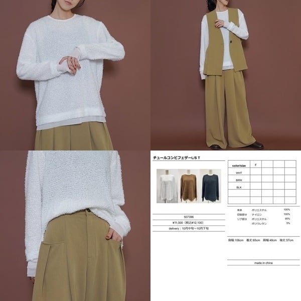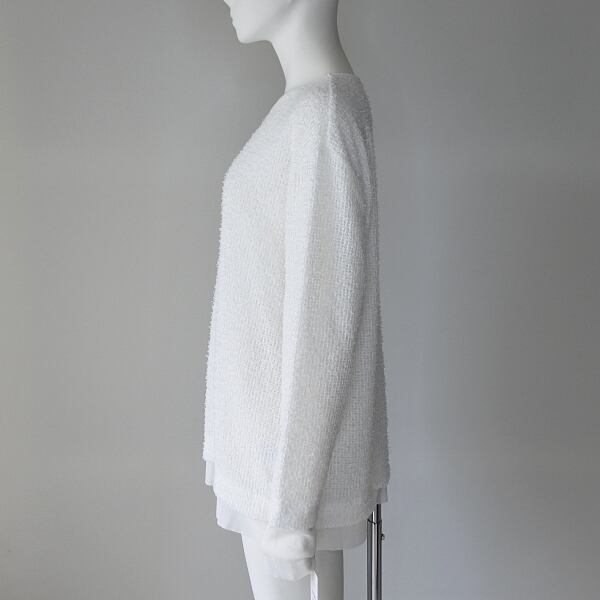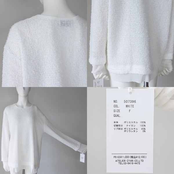 【 CYAN TOKYO 】シアン トーキョー 異素材コンビ チュール フェザー 長袖 カットソー 春秋冬 レディース [507396-WHT]