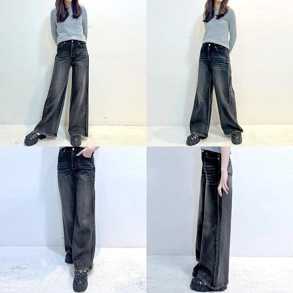 あたたかく柔らかな裏起毛素材を使用したワイドデニムです。