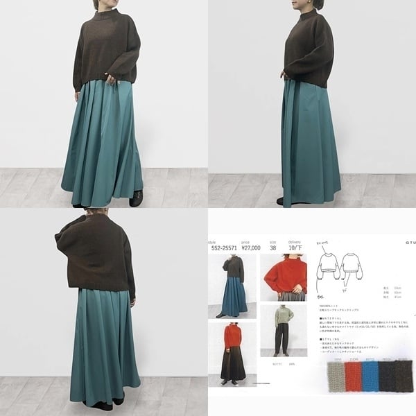 スカート、パンツどちらにも合わせやすい万能アイテムです。