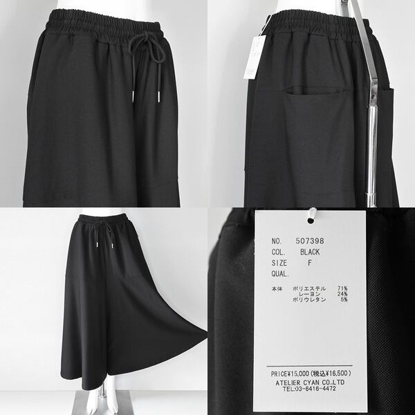 《セットアップ対応》【 CYAN TOKYO 】シアン トーキョー ラウンドヨーク BIGガウチョ パンツ 春秋冬 レディース [507398-BLK]