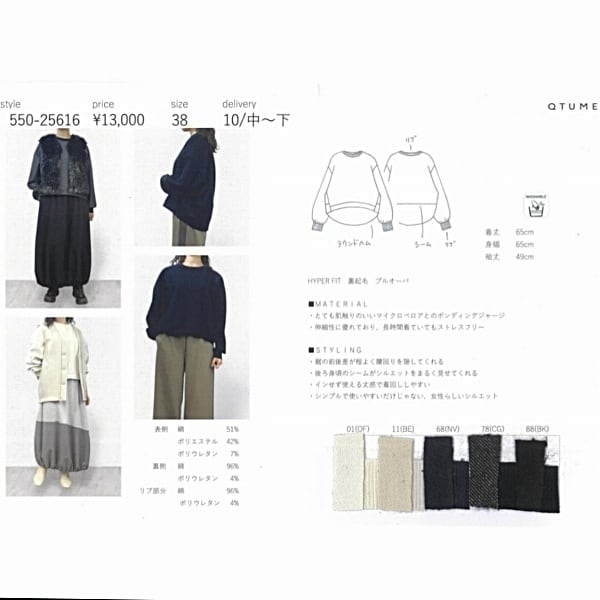 《 セットアップ 対応》【 QTUME 】 クチューム 日本製 裏起毛 マイクロベロア スウェット スエット プルオーバー 春秋冬 レディース
