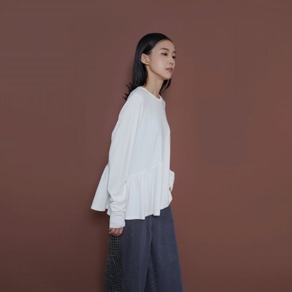 お手持ちのベストやニット等の裾からからチラリ、様々なインナー使いでグーンとこなれ感のあるスタイリングになる1枚。