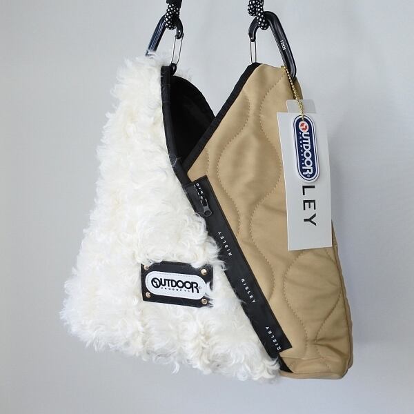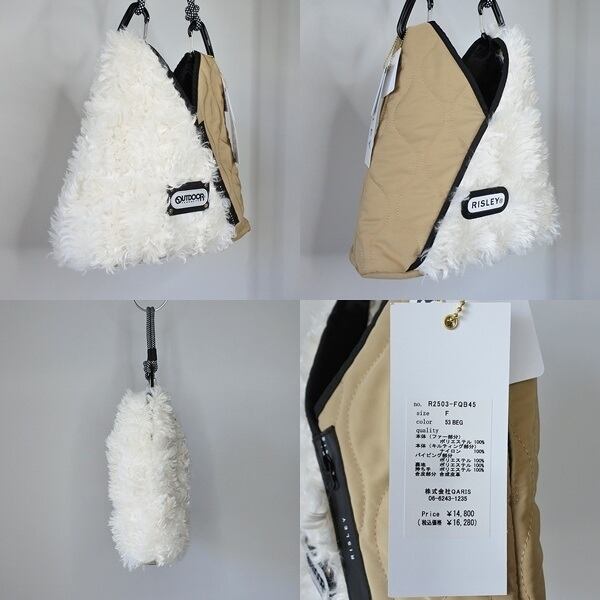 【 RISLEY x OUTDOOR 】 リズレー リズレイ アウトドア コラボ Triangle fur quilt mini bag エコファー トライアングル ミニ バッグ 春秋冬 レディース [R2503-FQB45-53-BGE]