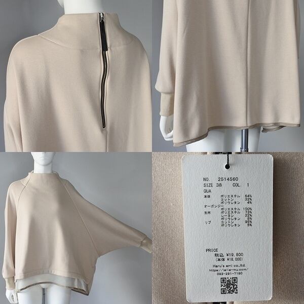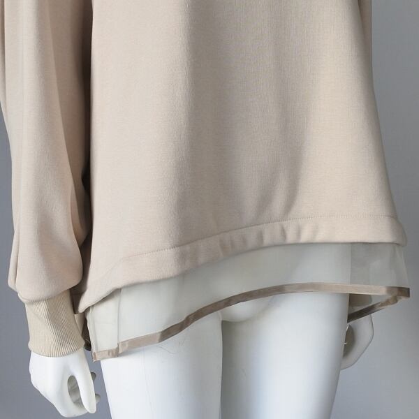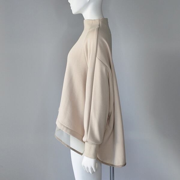 【 Lallia Mu 】ラリアムー 日本製 極暖 ゆったり 異素材コンビ ボンバーヒート 裏起毛 ソフトサーモ フレア ボトルネック プルオーバー カットソー 春秋冬 レディース [2514560-LBGE]