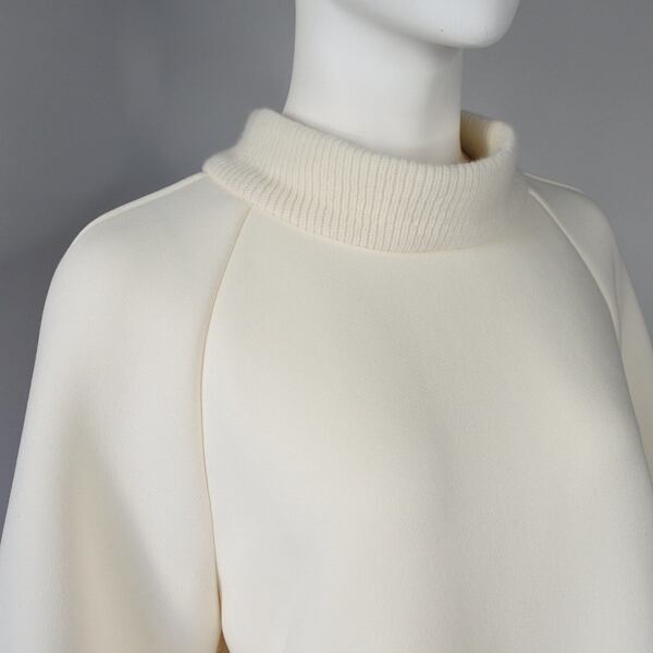 さらに衿元と袖の切り替え部分には太番手のリブニットを使用。