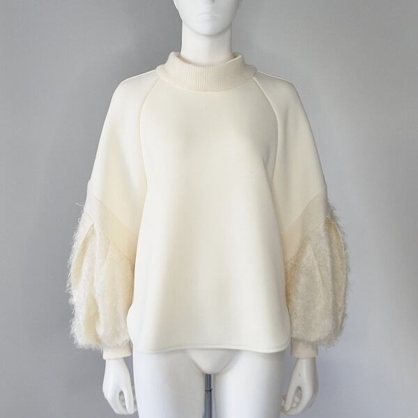 【 Lallia Mu 】ラリアムー 日本製 異素材コンビ シャギースリーブ プルオーバー 春秋冬 レディース