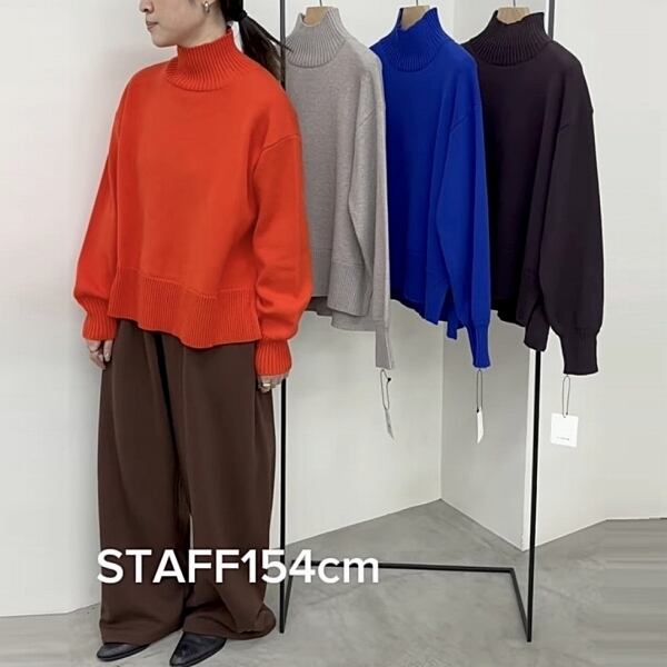 スカート、パンツどちらにも合わせやすい万能アイテムです。