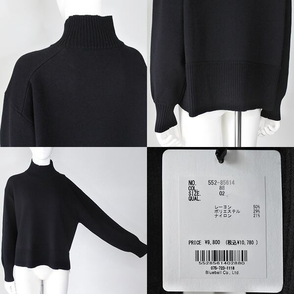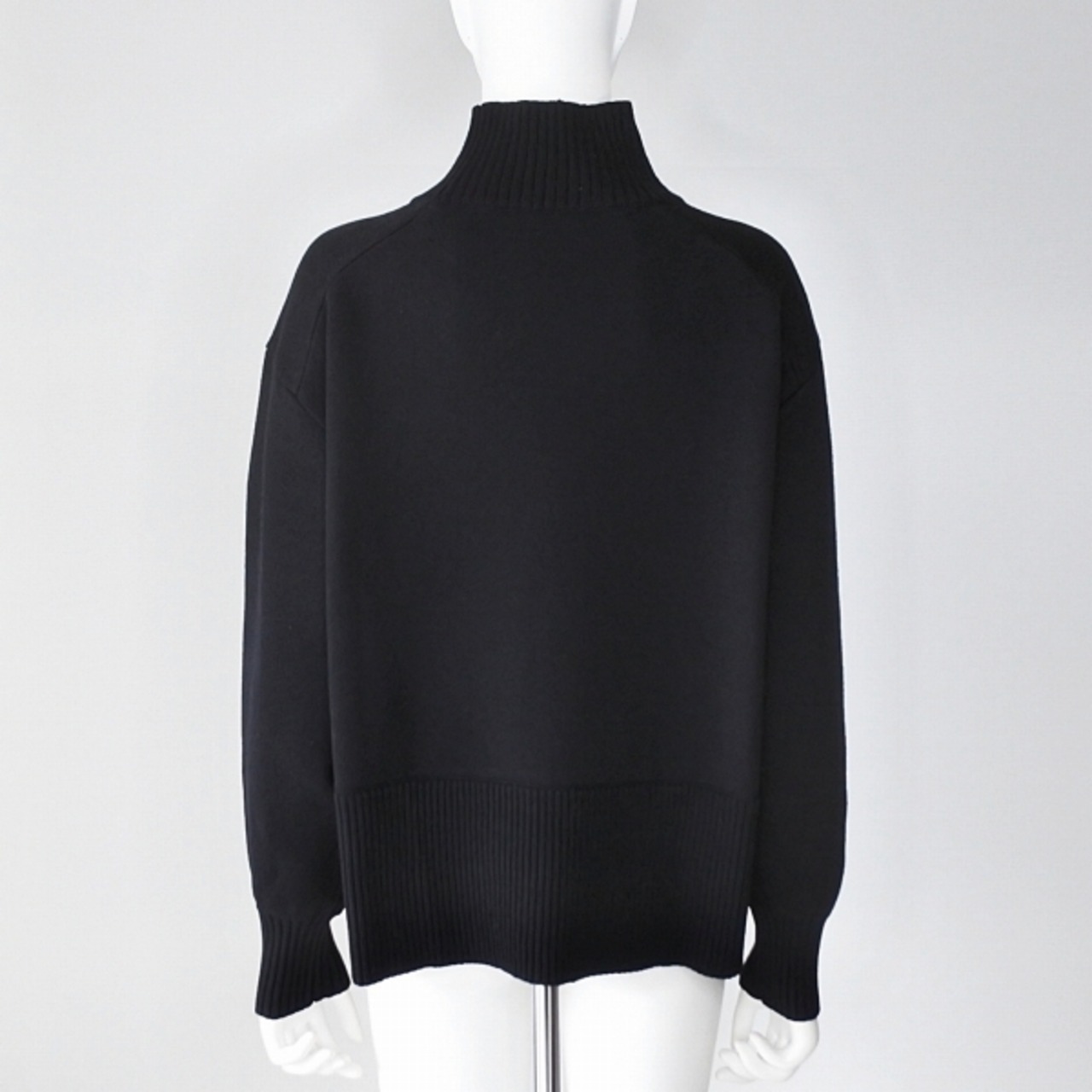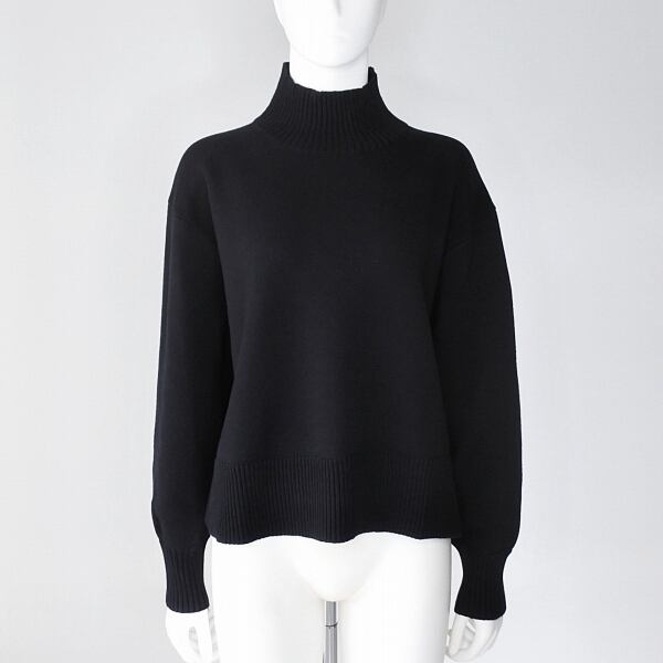 【 CLOCHE 】 クロッシェ クロシェ ノンチク ゆったりシルエット ミドルゲージ ハイネック プルオーバー ニット 春秋冬 レディース [552-85614-88-BLK]