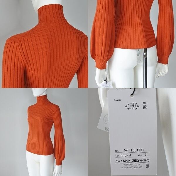 【 TOLNERA 】 トルネラ ノンチク もちもち ハイネック ボリューム袖 リブ ニット 春秋冬 レディース [54-TOL4231-3-ORG]