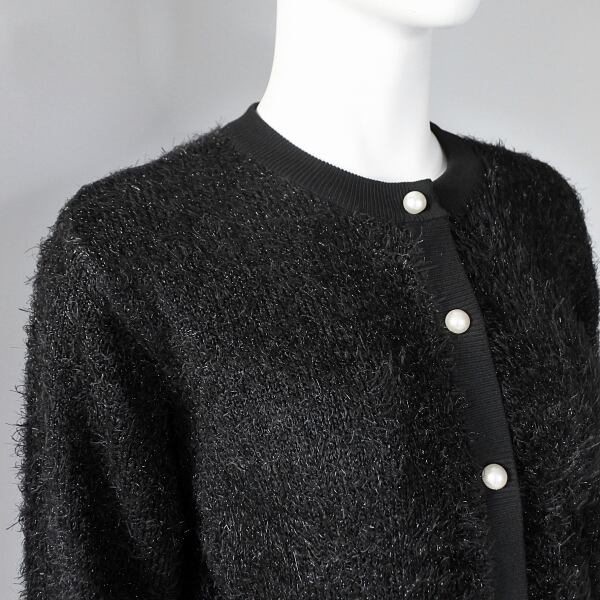 【 anana 】アナナ ノンチク パールボタン シャギー ラメ糸 ニット ショート カーディガン 春秋冬 レディース [a41-032-BLK]