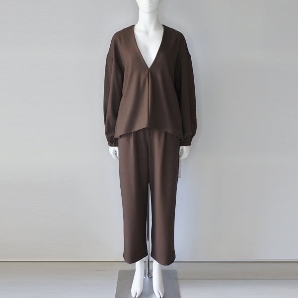《 セットアップ対応 》【 CLOCHE 】 クロッシェ クロシェ ゆったりシルエット シアバター加工 吸湿発熱 裏起毛 Vネック サイドスリット ストレッチ カットソー ブラウス 春秋冬 レディース [552-85667-85-BRW]