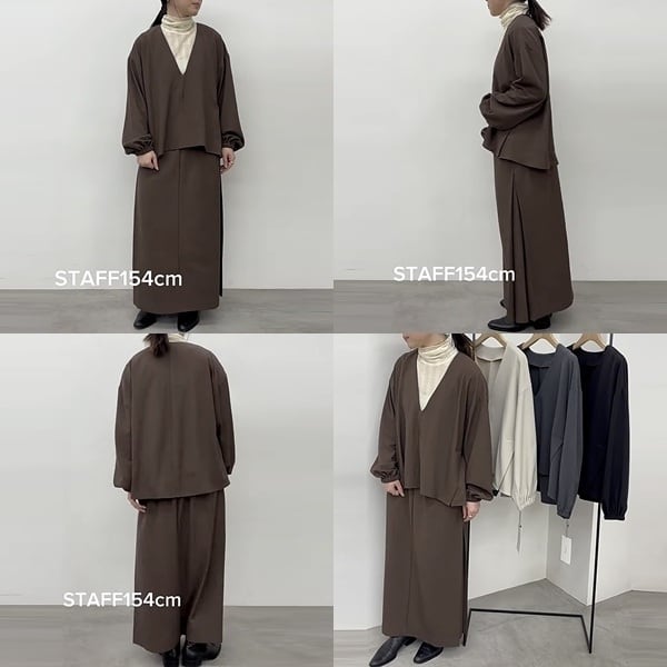 スカート、パンツどちらにも合わせやすい万能アイテムです。