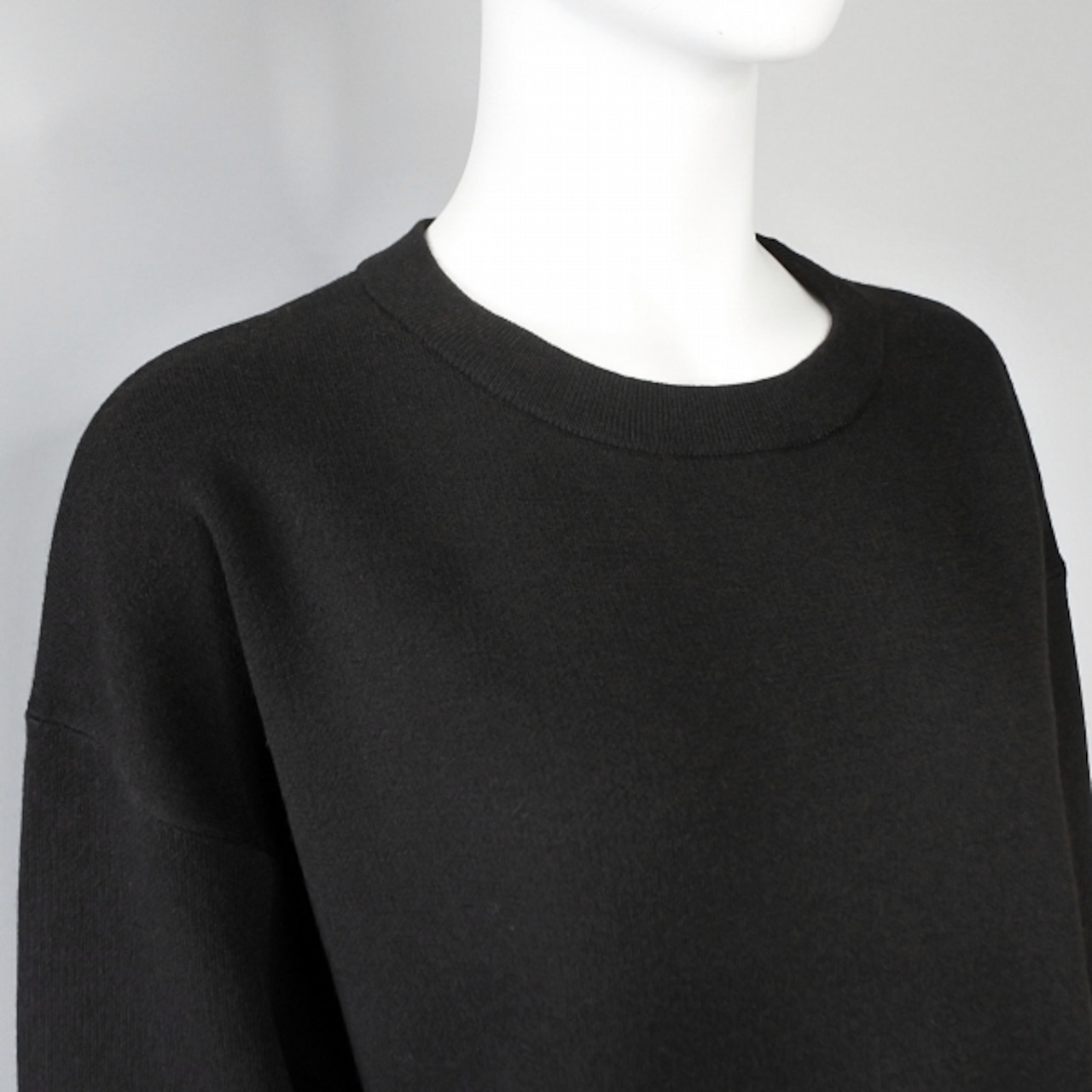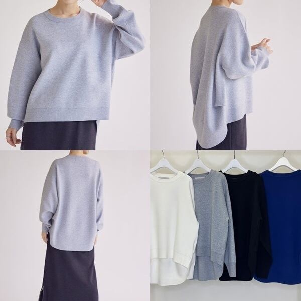 バックタックで丸みを帯びたデザインとクルーネックが統一感のある仕様になっています。