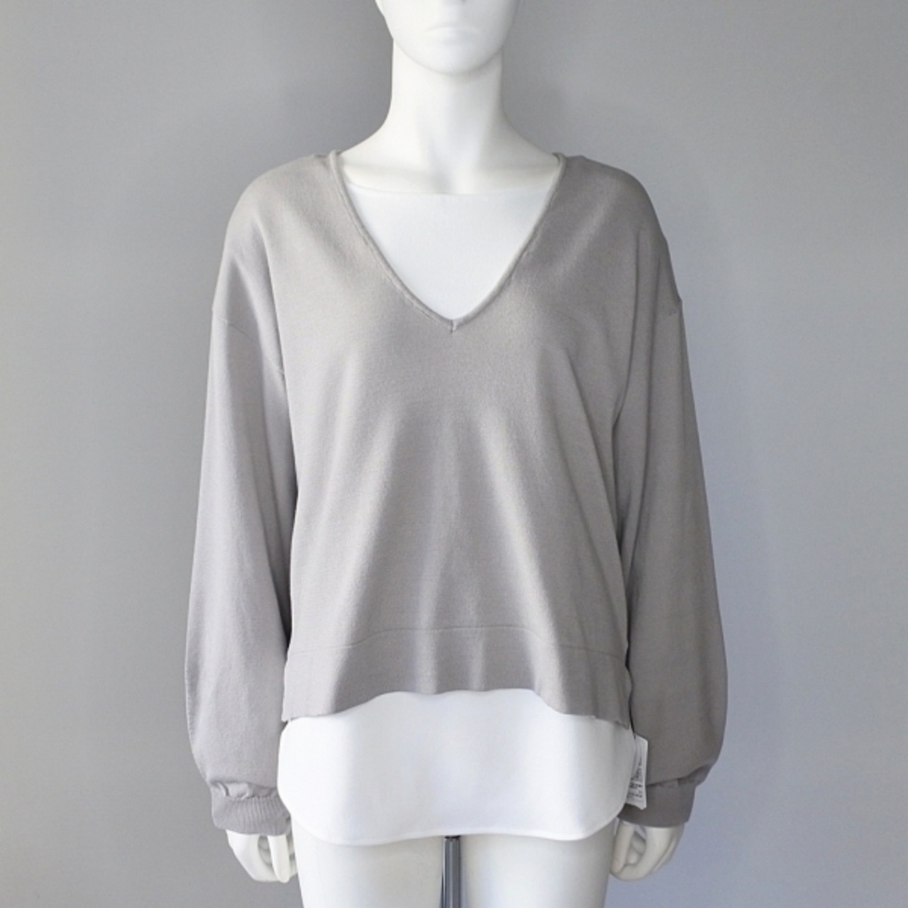 Vあきニットは左右脇スリットで前後差のある裾のデザインです。