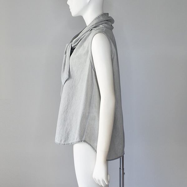 【 QTUME 】クチューム 4.5オンス ボウタイ ノースリーブ デニムシャツ 春夏秋 レディース [612-25001-77-GRY]