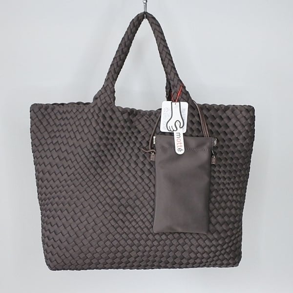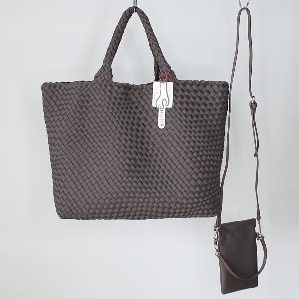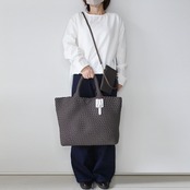 【 motte 】 モッテ 手編み イントレチャート メッシュ 携帯ポーチ付き L トート バッグ オールシーズン 男女兼用 [M25-12-DBRW]