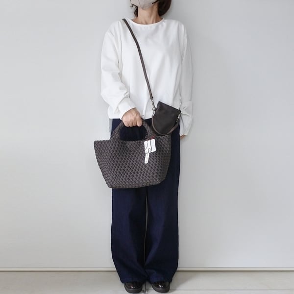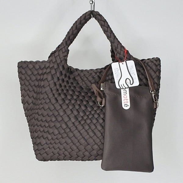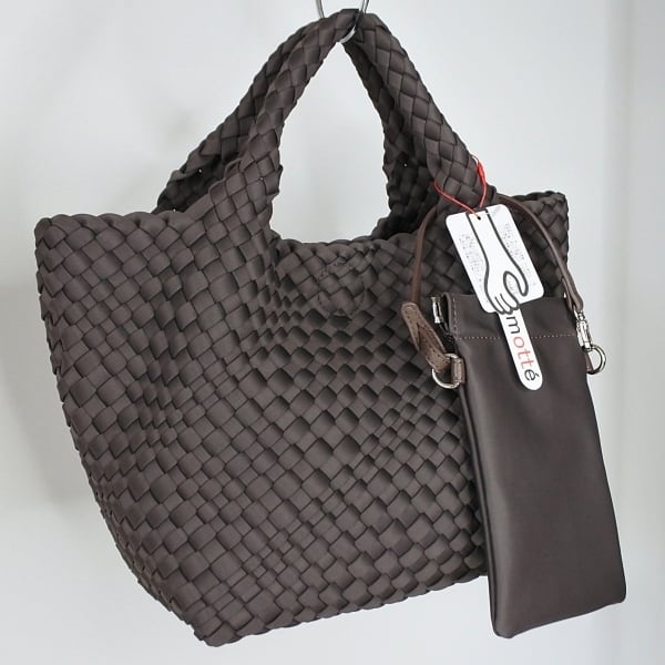 【 motte 】 モッテ 手編み イントレチャート メッシュ 携帯ポーチ付き S トート バッグ オールシーズン 男女兼用 [M25-14-DBRW]