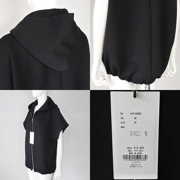 【 CLOCHE 】 クロッシェ クロシェ 日本製 ゆったりシルエット ダンボール素材 バルーン ジップ パーカー ベスト 春秋冬 レディース [610-85005-88-BLK]
