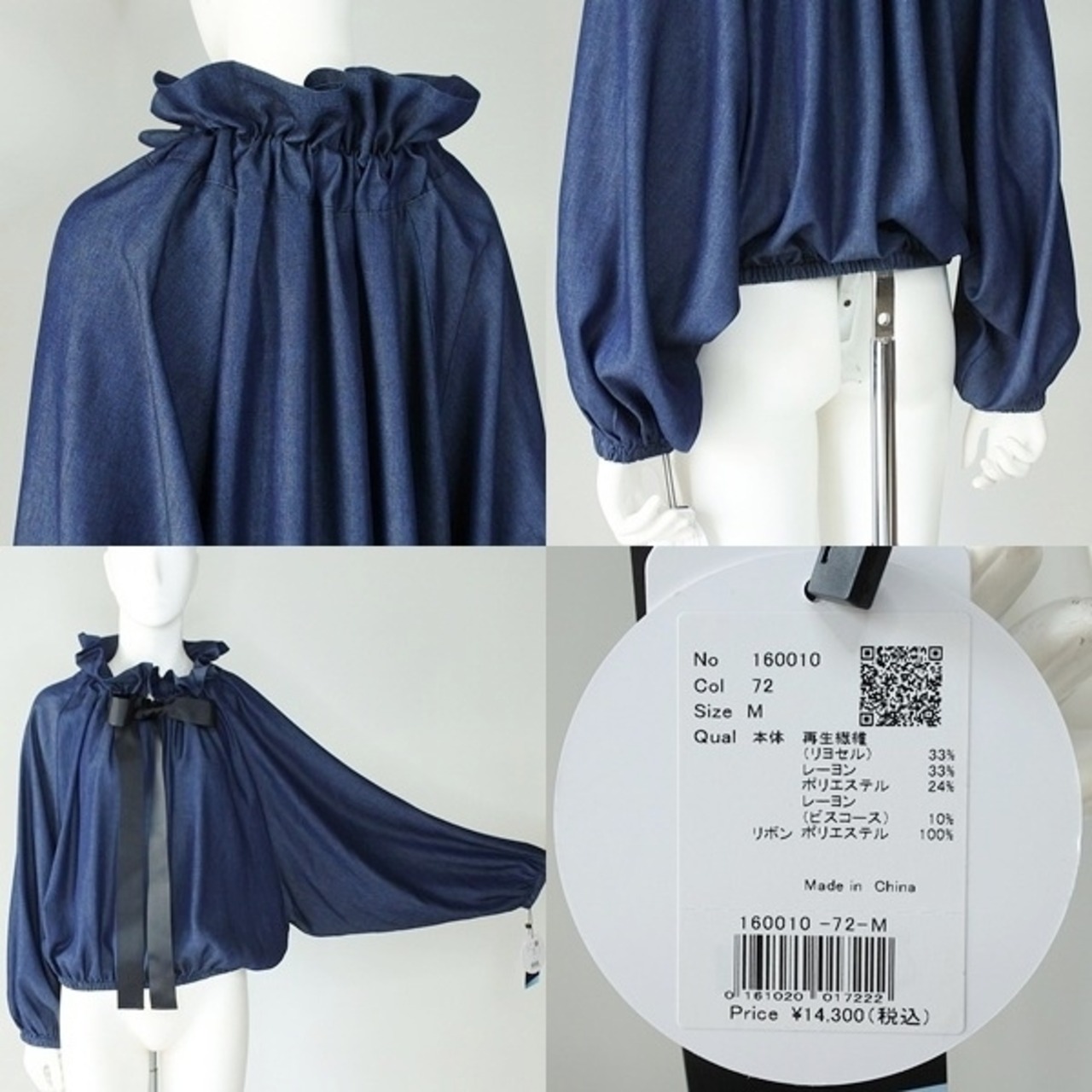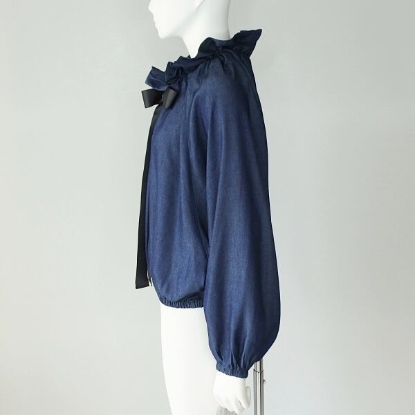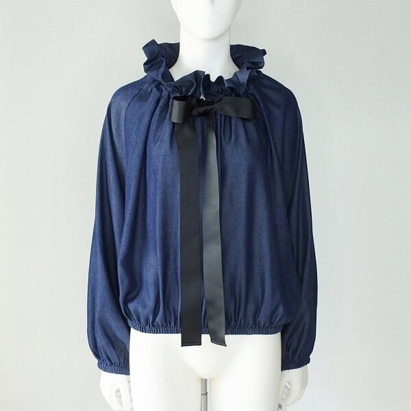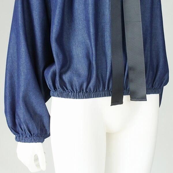 【 PICCIN 】ピッチン ビッグカラー リボン COOLMAX クールマックス 吸水 速乾 デニム シャンブレー ブラウス オールシーズン レディース