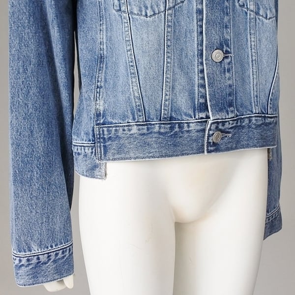 襟端のダメージ加工や裾のリメイク部分やウォッシュ加工もポイントです。