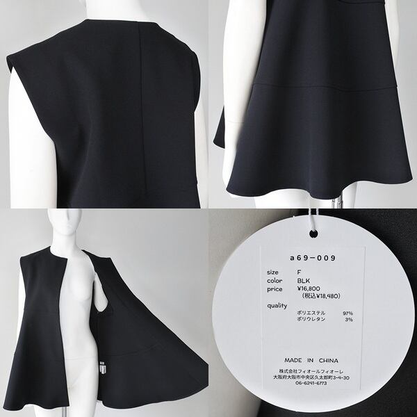 【 anana 】 アナナ ボンディング ペプラム ジレ ベスト 春秋冬 レディース [a69-009-BLK]