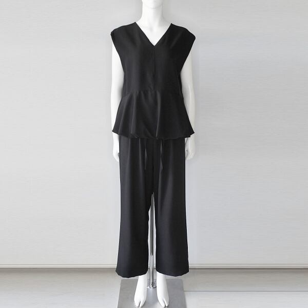 《 上下セット 》【 Dignite Collier 】 ディニテコリエ バルーン ブラウス パンツ セットアップ 春秋 レディース [80267062-004-BLK]