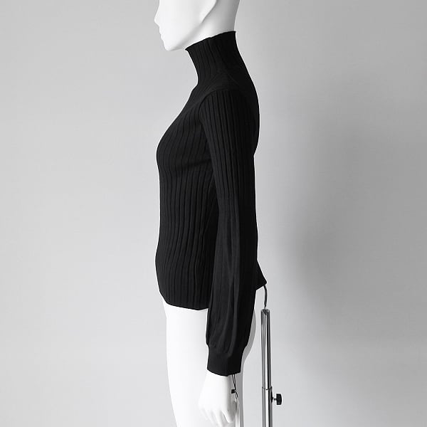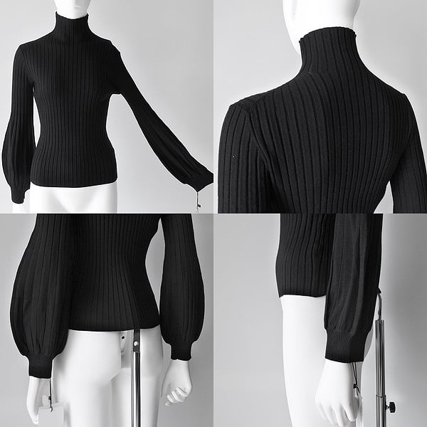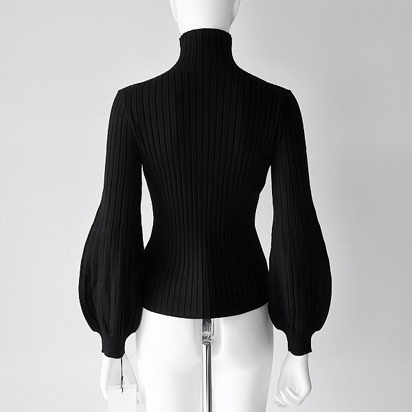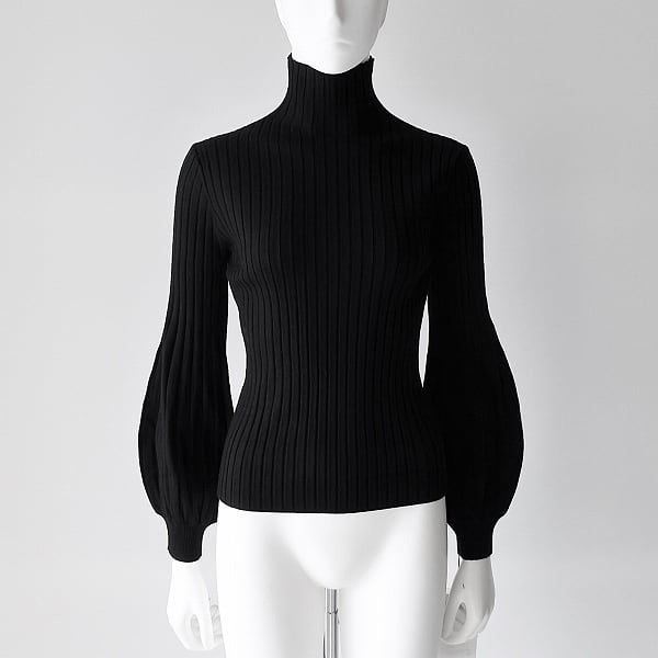 とっても柔らかい素材のハイネック/ボリューム袖/リブ/ニットです。