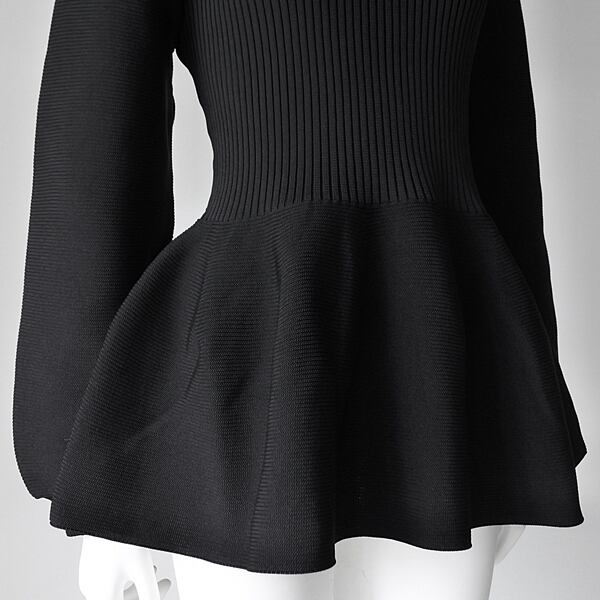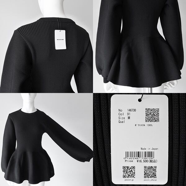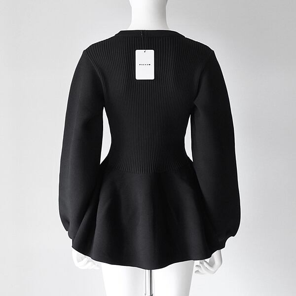 【 PICCIN 】ピッチン 日本製 高品質 ボリュームスリーブ ペプラム リブニット プルオーバー 春秋冬 レディース [146730-BLK]