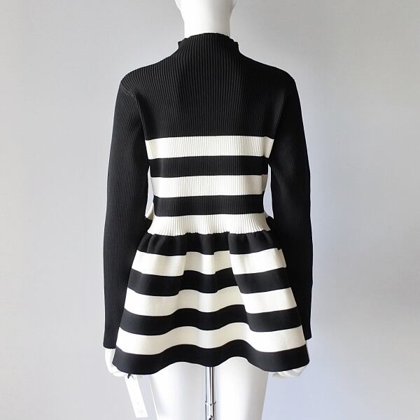 上身頃や袖はリブニット、切り替えから異なる編地のニットを採用し表情をプラス。