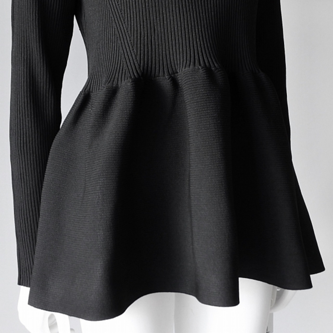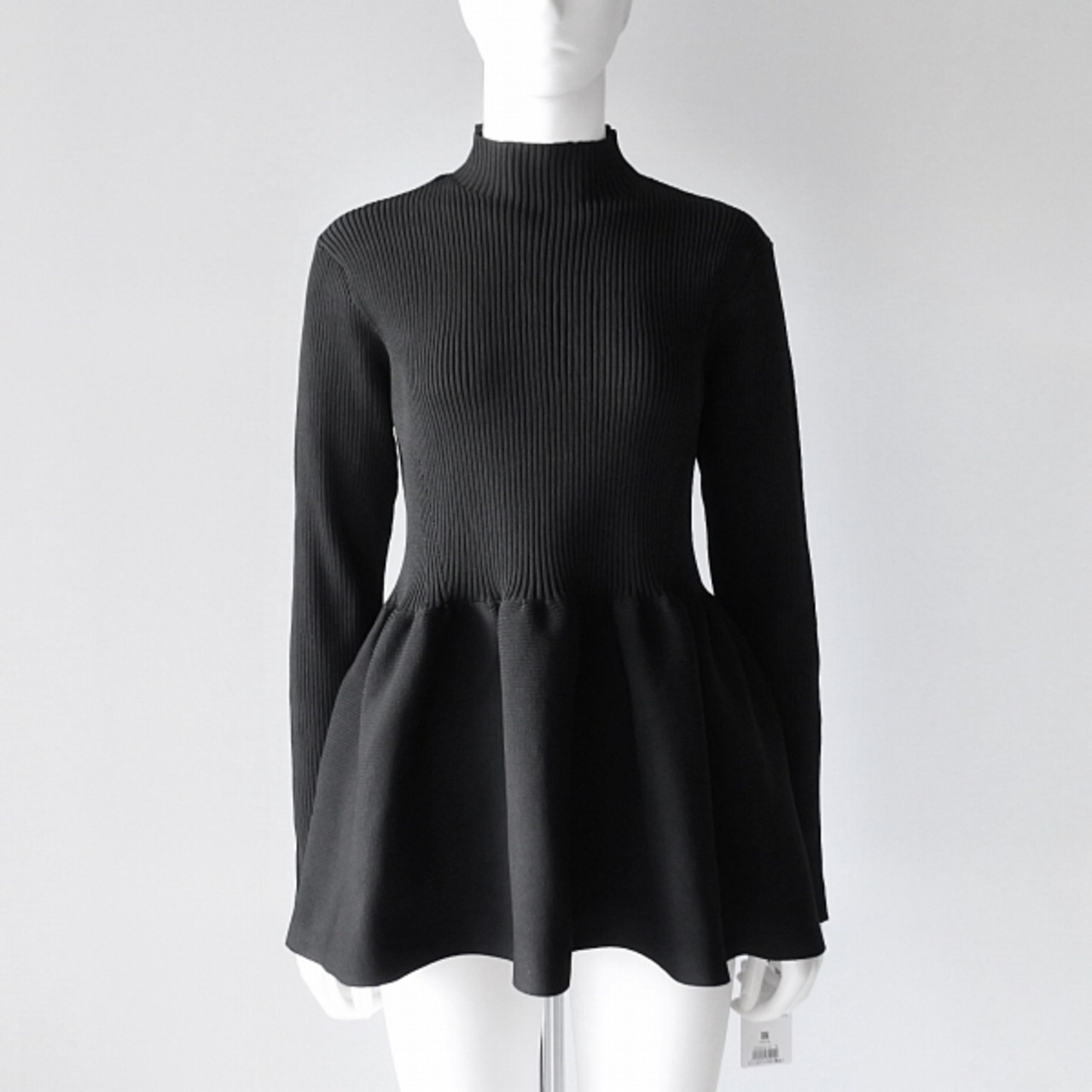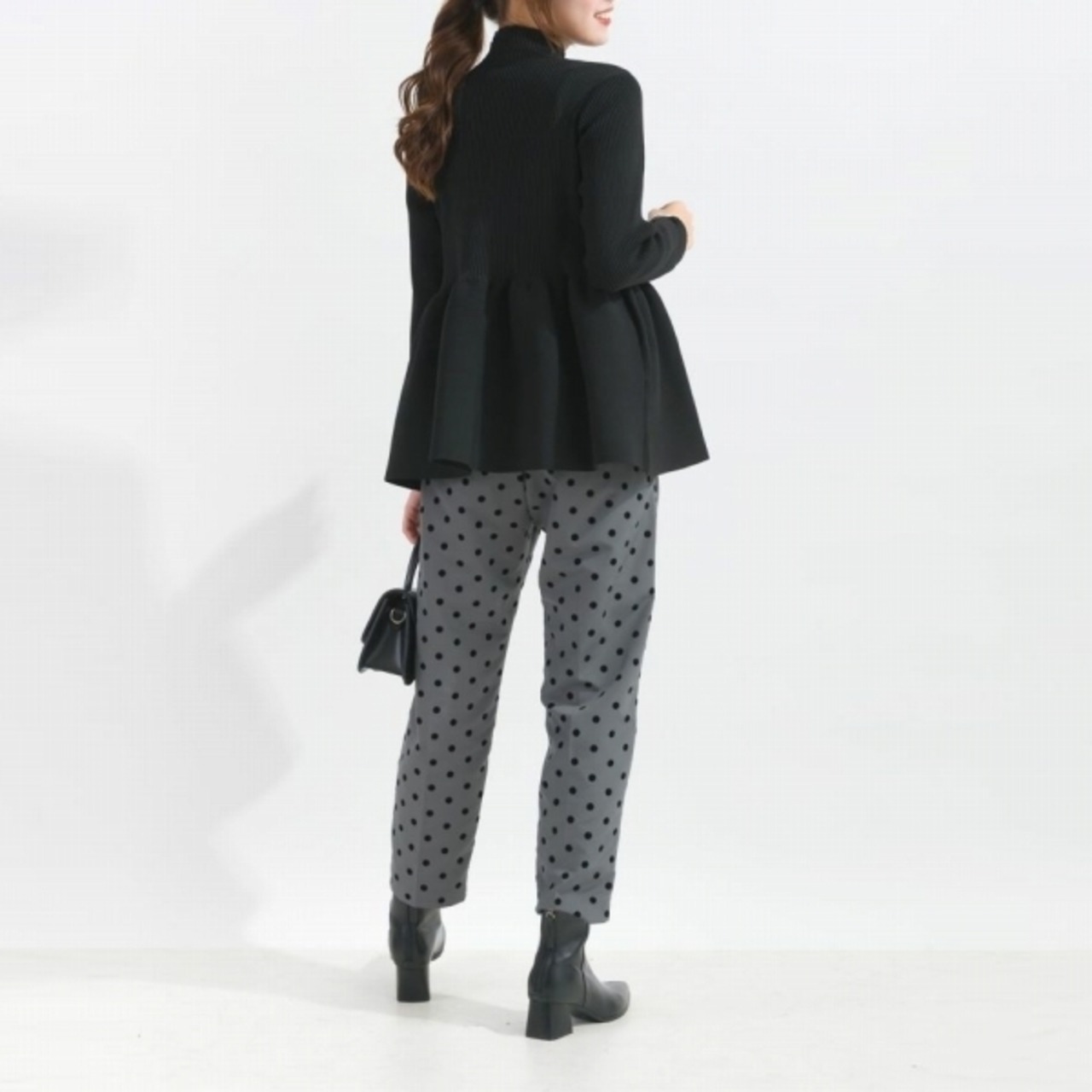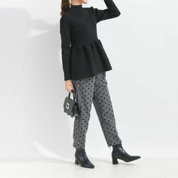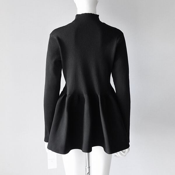 【 PICCIN 】ピッチン チクチクしない ペプラム ハイネック リブニット プルオーバー 春秋冬 レディース [904610-91-BLK]