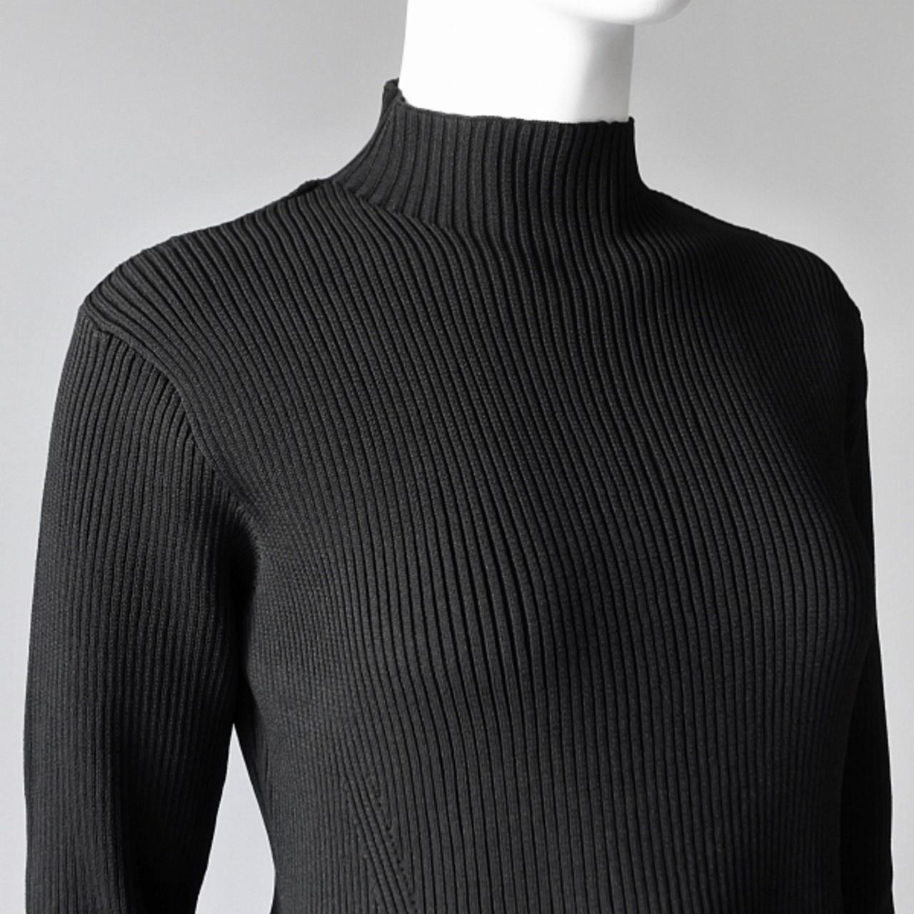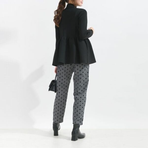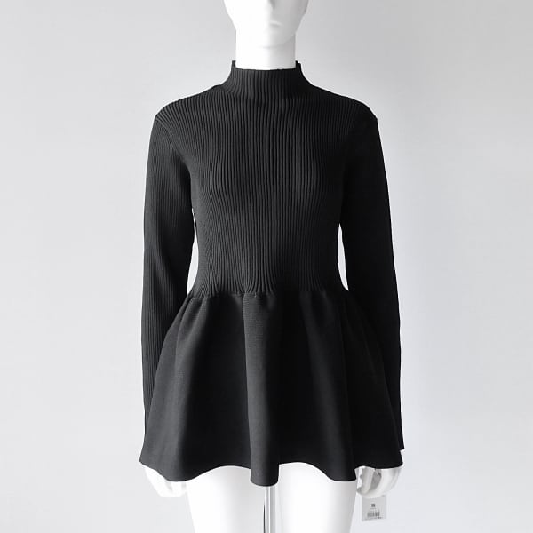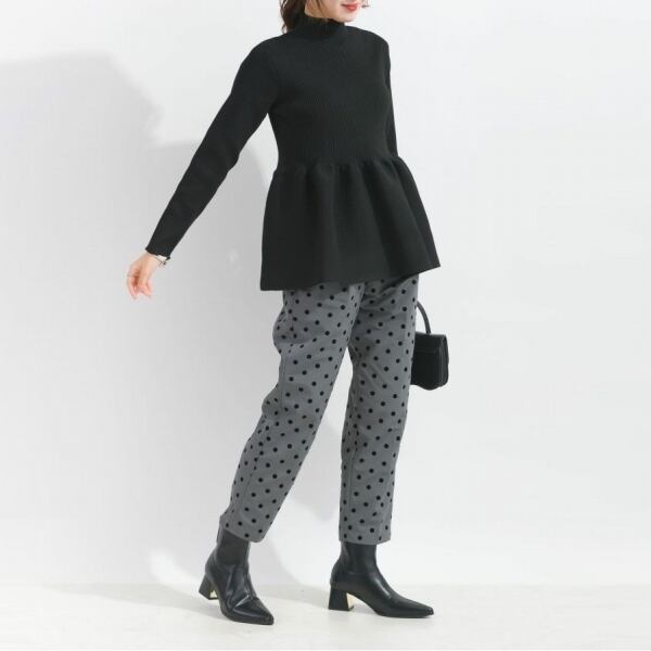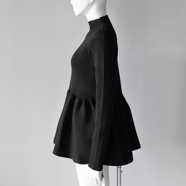 上身頃や袖はリブニット、切り替えから異なる編地のニットを採用し表情をプラス。