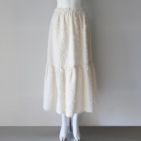 フサフサとした質感がとても華やかなフェザー/カットジャガードのティアード/スカートです。